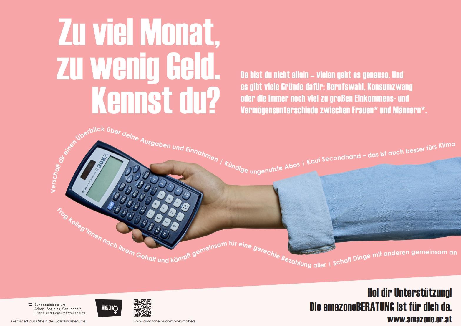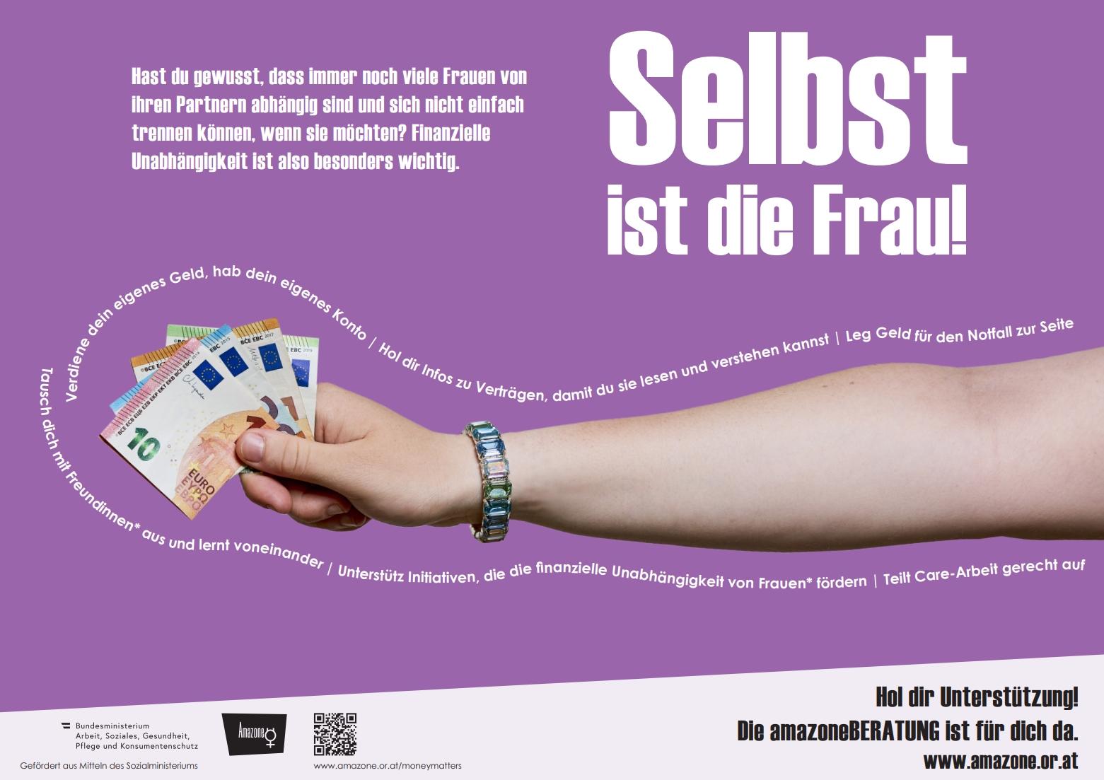 Mit der Unterstützung des Sozialministeriums entwickelte die in Vorarlberg ansässige Frauen- und Mädchenberatungsstelle Amazone eine Kampagne für Mädchen* und jungen Frauen* mit dem Ziel, ihre Kompetenzen in Hinblick auf Geld und Finanzen zu erweitern und ihre Selbstbestimmung und Unabhängigkeit langfristig zu stärken.